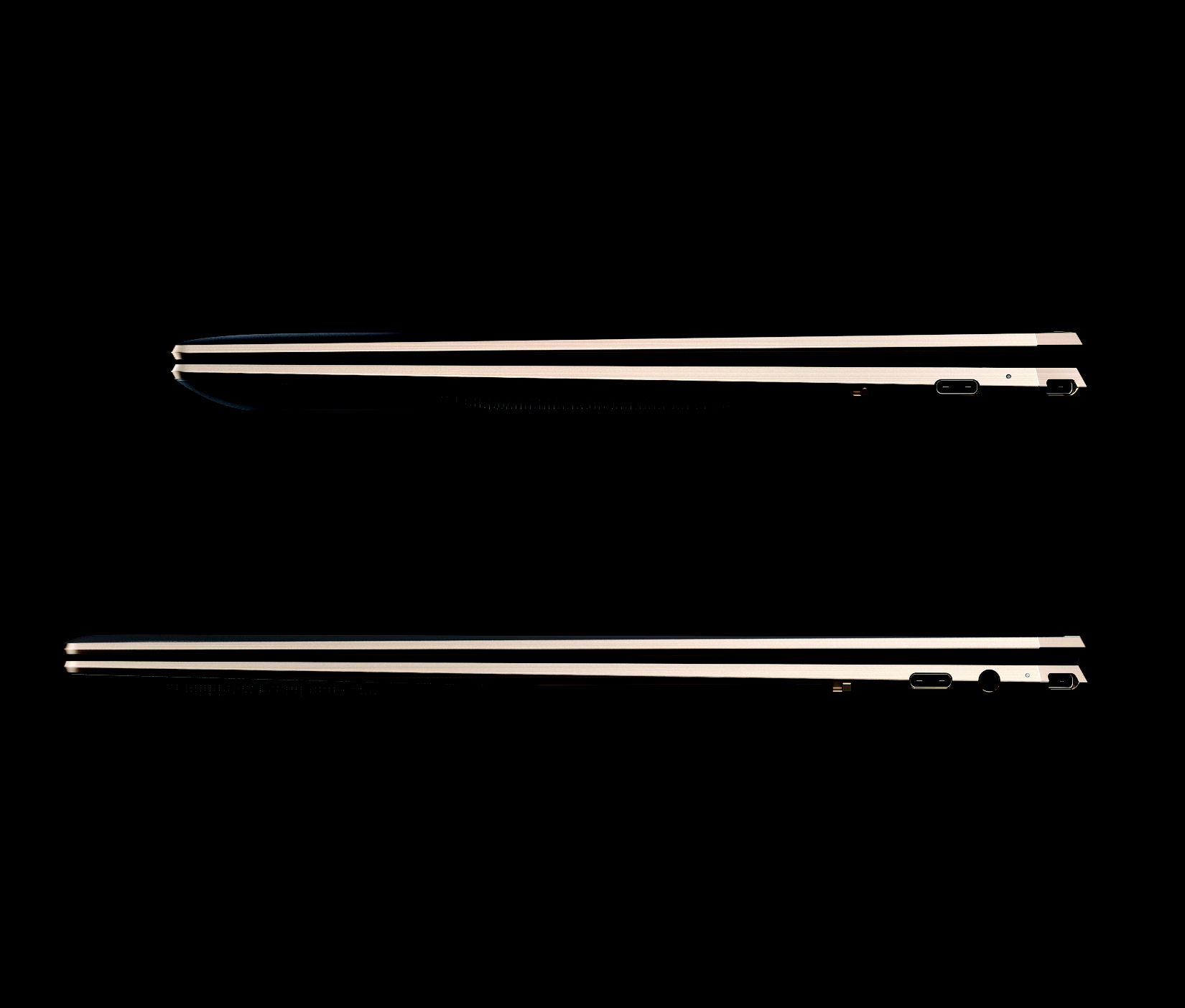 The HP Spectre x360 13 is 13% smaller versus the previous generation, with a system Y dimension reduction of 23.4 mm, the top border reduced by 12 mm, and the bottom border reduced by 15 mm.
